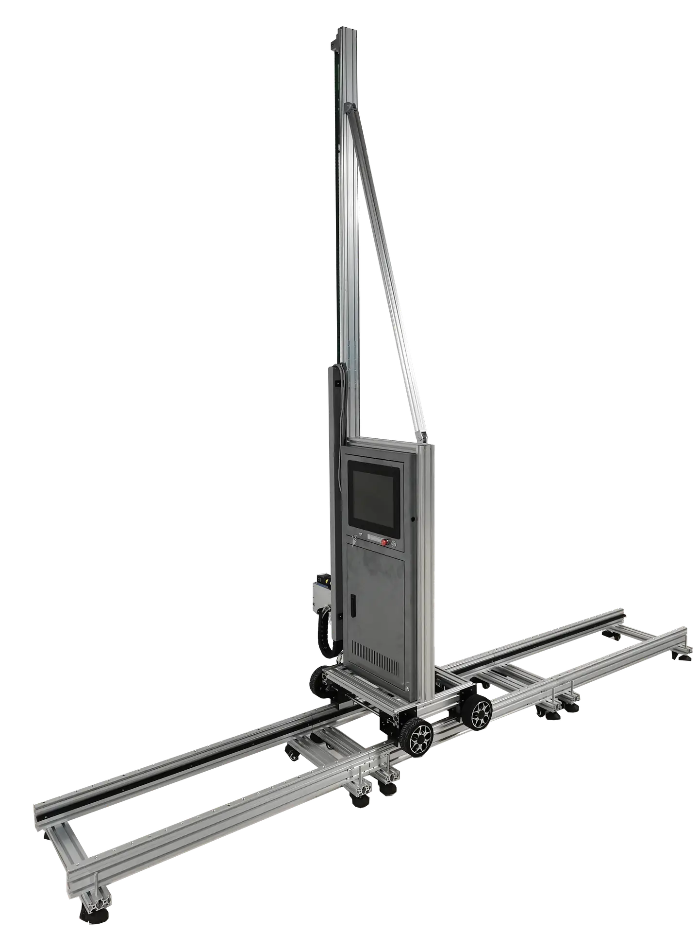 The iWP-Model B wall printer with wheels and rails driving system, height-adjustable and mobile-flexible, it can be used in both outdoor and indoor working environments.